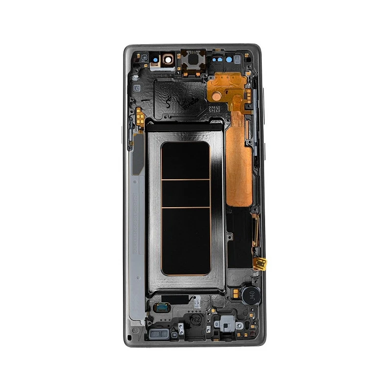 Vitre écran complet comprenant : Vitre tactile, écran 6.4’’ Super AMOLED Quad HD+, grille écouteur, haut parleur du haut (écouteur interne), vibreur, boutons volume, Bixby et power et leurs connectiques, l’ensemble est déjà assemblé sur le châssis métallique Noir profond d’origine Samsung.